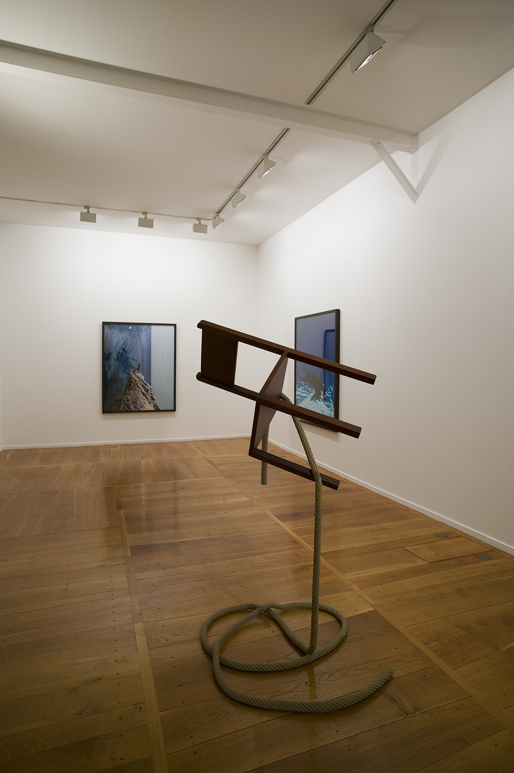 In 2004, during his previous exhibition at the Xippas gallery, Philippe Ramette showed an ensemble of prostheses-sculptures designed for a series of photographs which were inspired by the swinging device used in the Balconies Series. Turning the image or his own body upside down, the artist is challenging the world and defying the laws of gravity. The protheses, hidden under a traditional suit and tie and not visible on the pictures, allow the artist to experience what he himself calls « irrational postures » during the brief moment of the shooting.