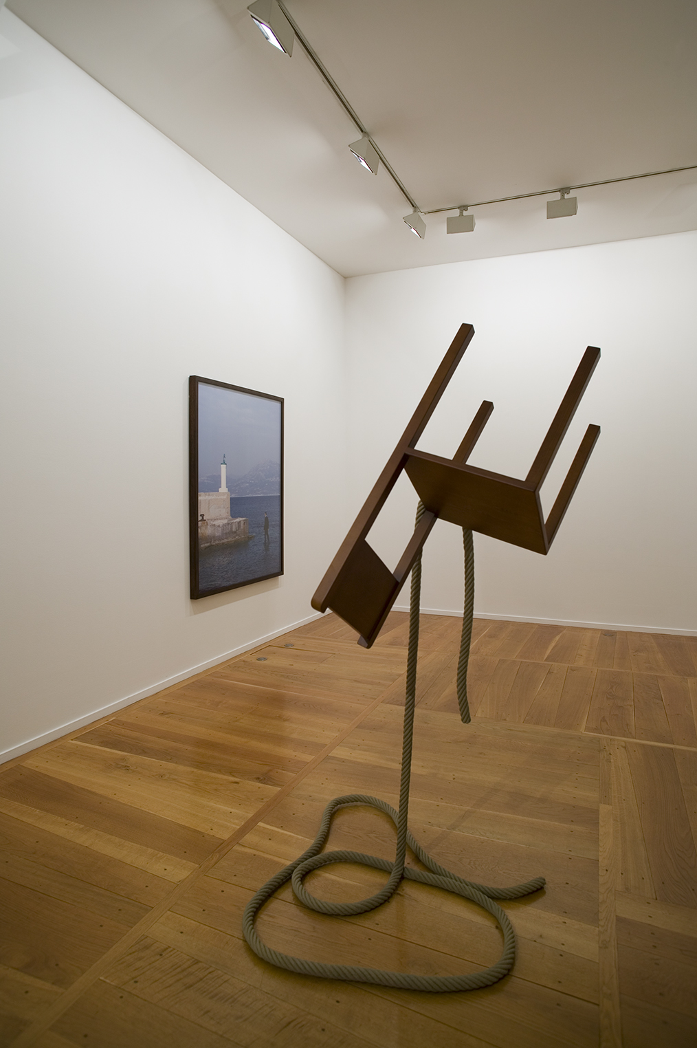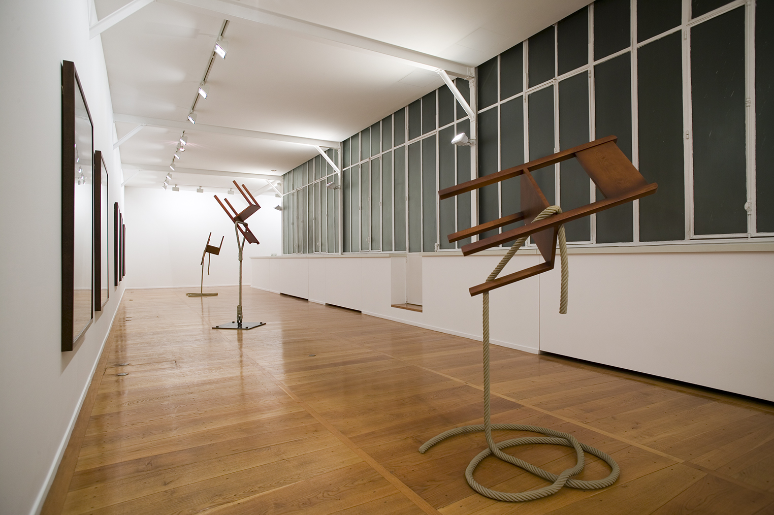 At the same time, Philippe Ramette will show a group of Levitation of chairs. One of them was already exhibited at the FIAC in 2005. These painted bronze sculptures simulate the real textures and colours of wood and rope, thus creating the illusion of levitation in a poetical mode. The artist himself calls his works “photographic sculptures”. They depict the instantaneousness of a movement: the moment when the chair flies away and escapes from the rope that has retained it.