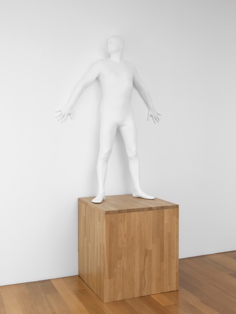 The exhibition will also present a sculpture, l’éloge de la discrétion (in praise of discretion), which also deals with the question of the incorporation of the artist’s physical presence in the work. Scanned and reproduced in resin, the figure that stands in the gallery space was cast from a model of the artist’s body and so has also called upon the presence of his physical form. Having shown a certain boldness with his photographic demonstrations, the artist takes on a more subtle tone by camouflaging himself to blend in with the gallery space. The sculpture echoes with the disconcerting nature of the rest of the exhibition, accompanying the spectator on a meandering discovery of the artist, revelatory as always.