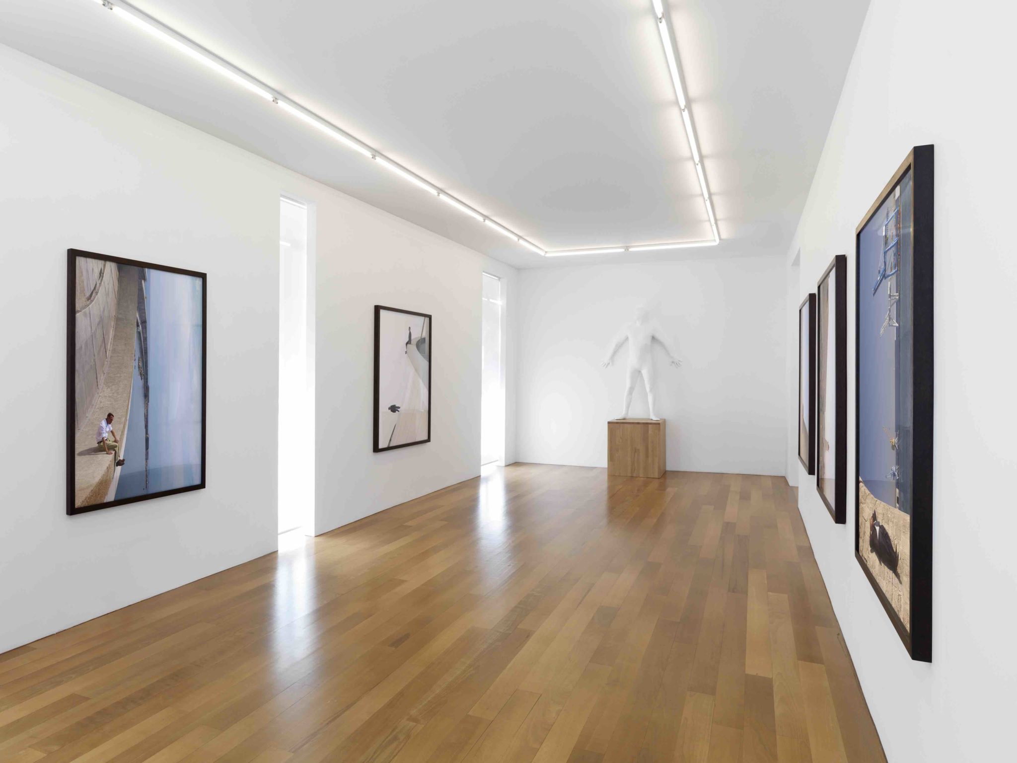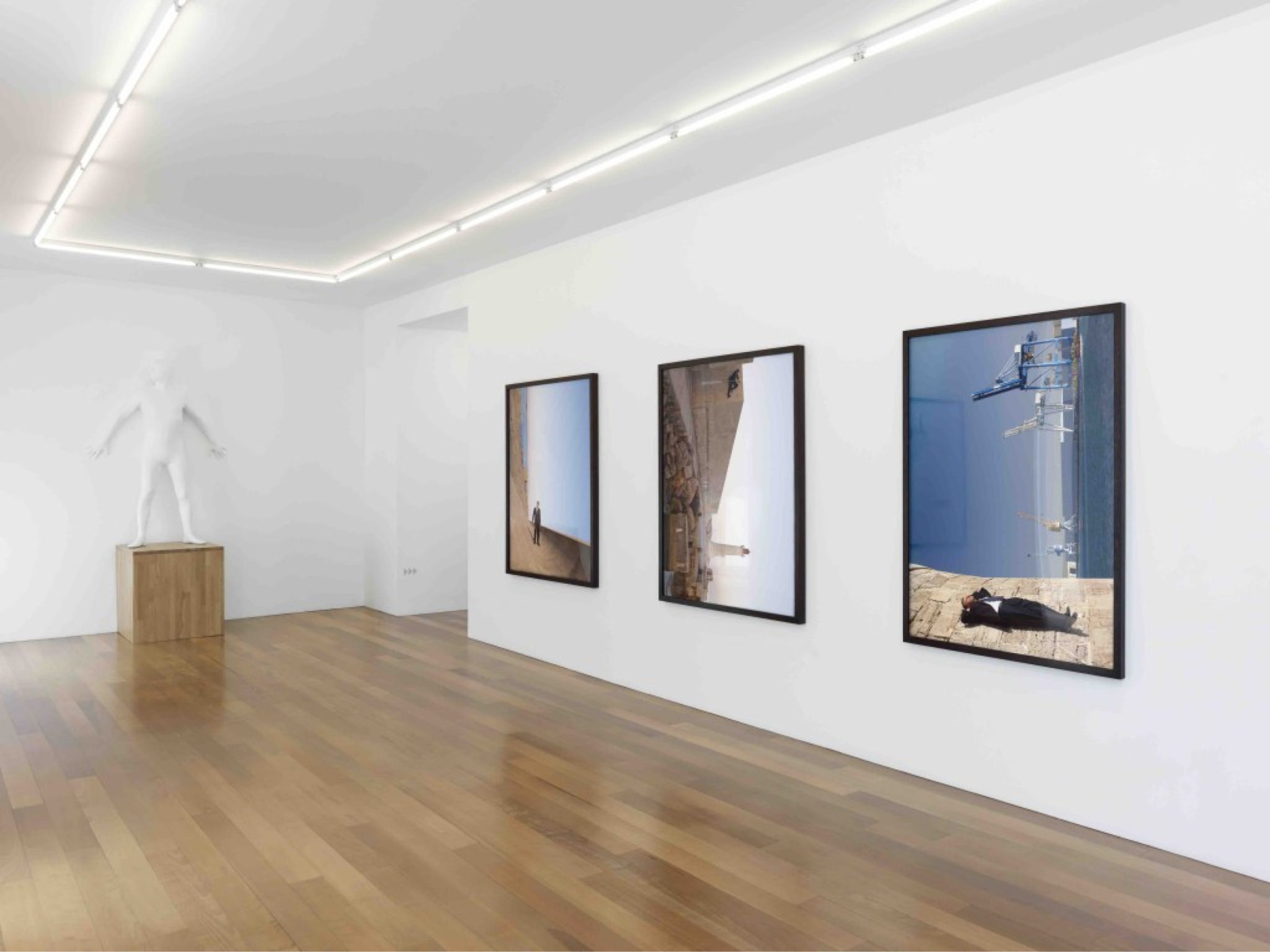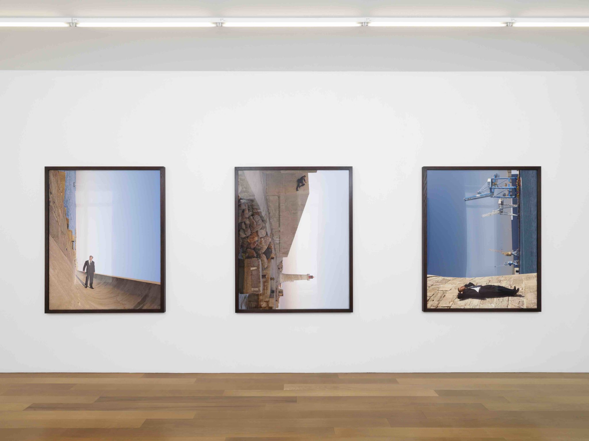 Philippe Ramette presents the resulting photographic series at Xippas gallery, Geneva. In a similar vein as his “sculpture-prostheses,” these surrealistic experimentations capture the artist on the other side of the lens as he takes on improbable and illogical poses. The acrobatic performances the artist stages are carried out without the use of stand-ins or digital retouches; between the sky and the earth, on the edge of the void, these acts playfully fool the eye while also functioning as an enigma for the viewer to tease out.