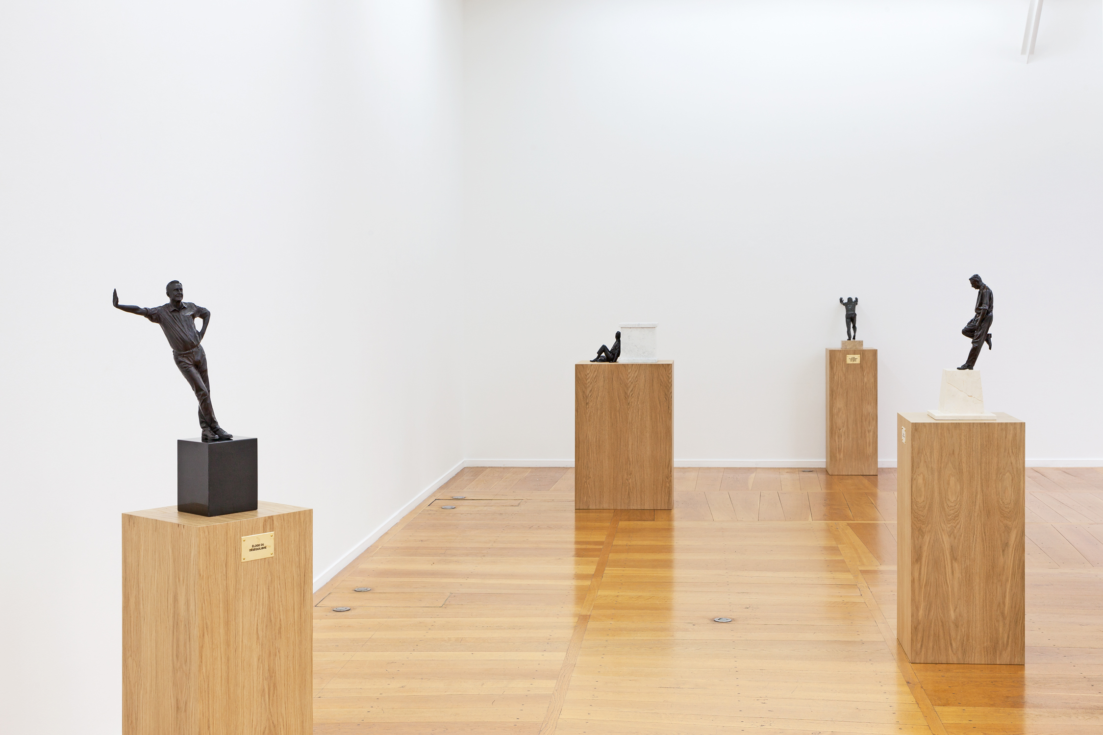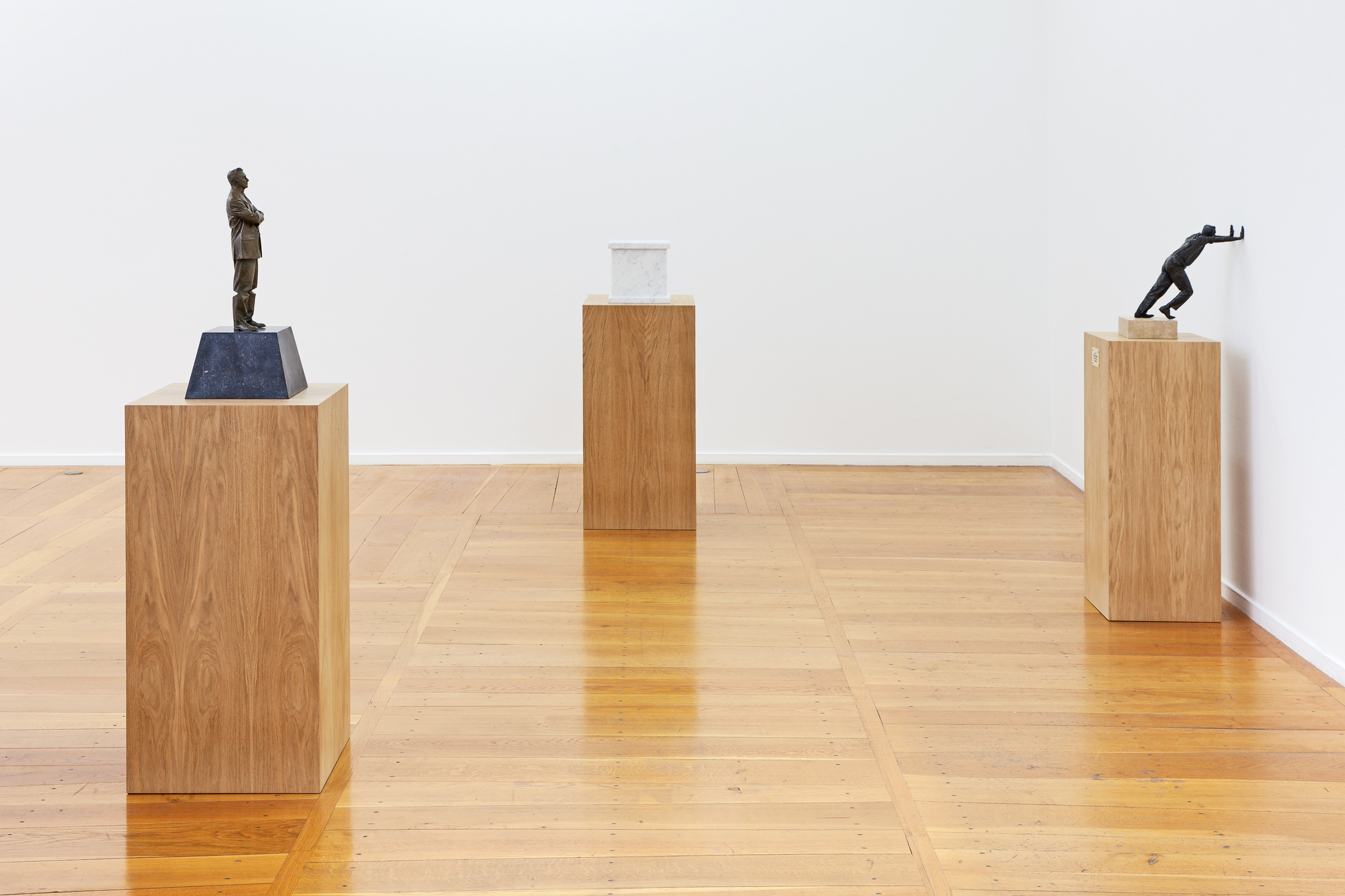 Each sculpture is characterized by the artist’s choice of stone and the variously coloured patinas, ranging from black to gold and green. They remind us of the sculptures from the 19th and 20th centuries that populate the public domain, but above all they evoke a timeless creative space that lends itself to all possible forms of reactivation.