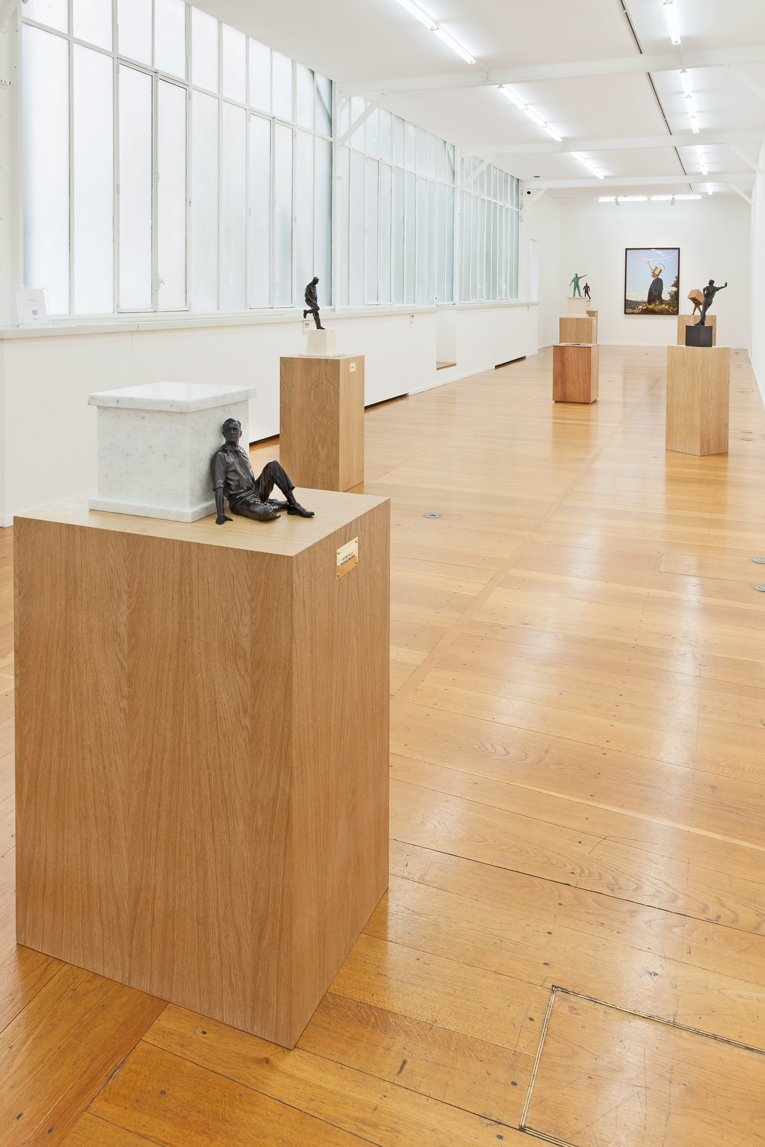 A figure in bronze, a medium ideal for a faithful portrayal of the artist, but on a more restrained scale, embodies the nonetheless constructive stages and states of introspection and doubt that make up the artist’s creative process: a pathway punctuated by questioning, renunciation and conclusions. As the expression of cerebral images rather than fixed objects, the ensemble forms a scenario into which the spectator is invited to project her or himself, drawn in by the physical representations of the artist’s states of mind, and where the works also evoke the limits we all have in common.