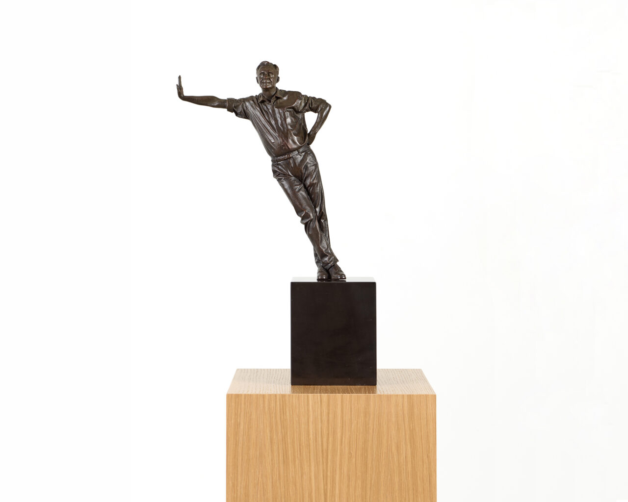 In Eloge du déséquilibre, Eloge de l’introspection and Eloge de la déambulation (In praise of imbalance, of introspection and of wandering), the artist leans into the void with all the nonchalance implied by the titles of the works; In Eloge de l’insatisfaction (In praise of dissatisfaction) the artist’s likeness uses all its might to push back its limits: in this case, a wall. There is a certain situational irony in Sculpteur allant travailler sur le motif (Sculptor setting off to work on his subject), where the statue is carrying a stone pedestal on its back; In Eloge de la procrastination (In praise of procrastination), the sculpture, in a pose evoking an attitude of “let’s wait and see”, leans back against its pedestal.