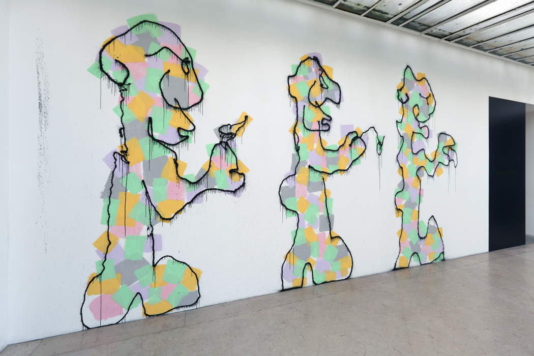Hayan Kam Nakache welcomes visitors with vast murals of figurines: half in nostalgia, half in disappointment, giant clowns stand in single file under a glass ceiling as if waiting at a club entrance.