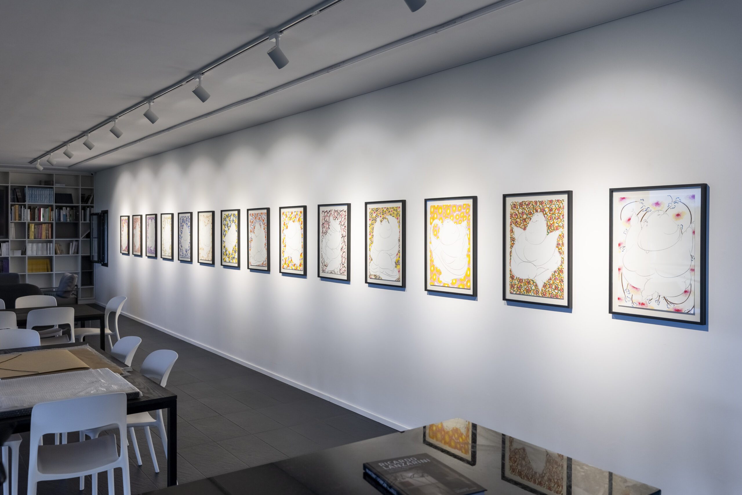 The electricity that flows through these images is not given solely by chromatic intensity. It responds, above all, to the double sign of a political space enacted on paper, to a kind of contradiction between two fields of force: the expansive and the implosive. This cyclical variation of meaning, which the gaze apprehends intermittently, constitutes the principle of an alternating current that runs through and unsettles each of the scenes in this endless dance.