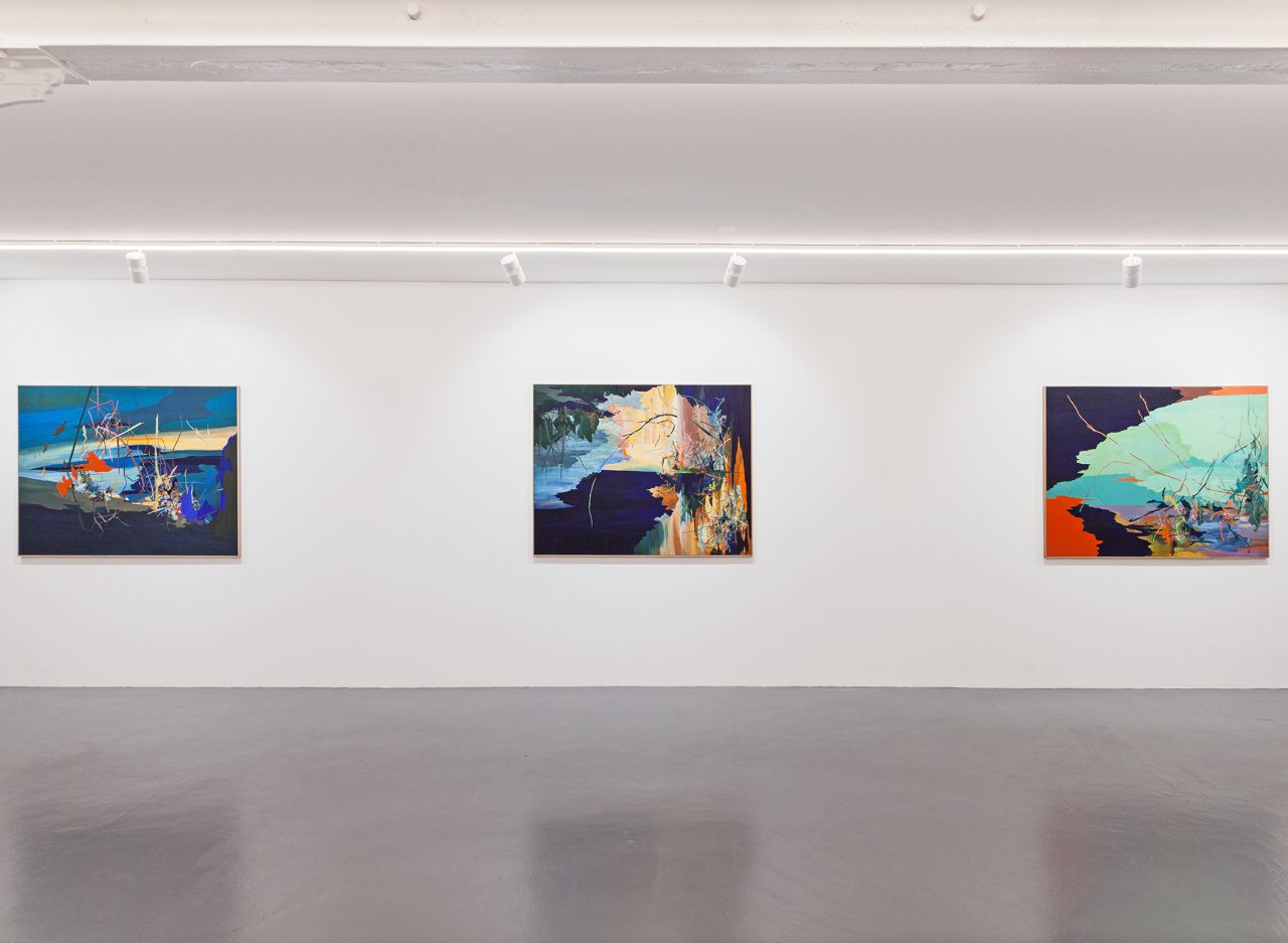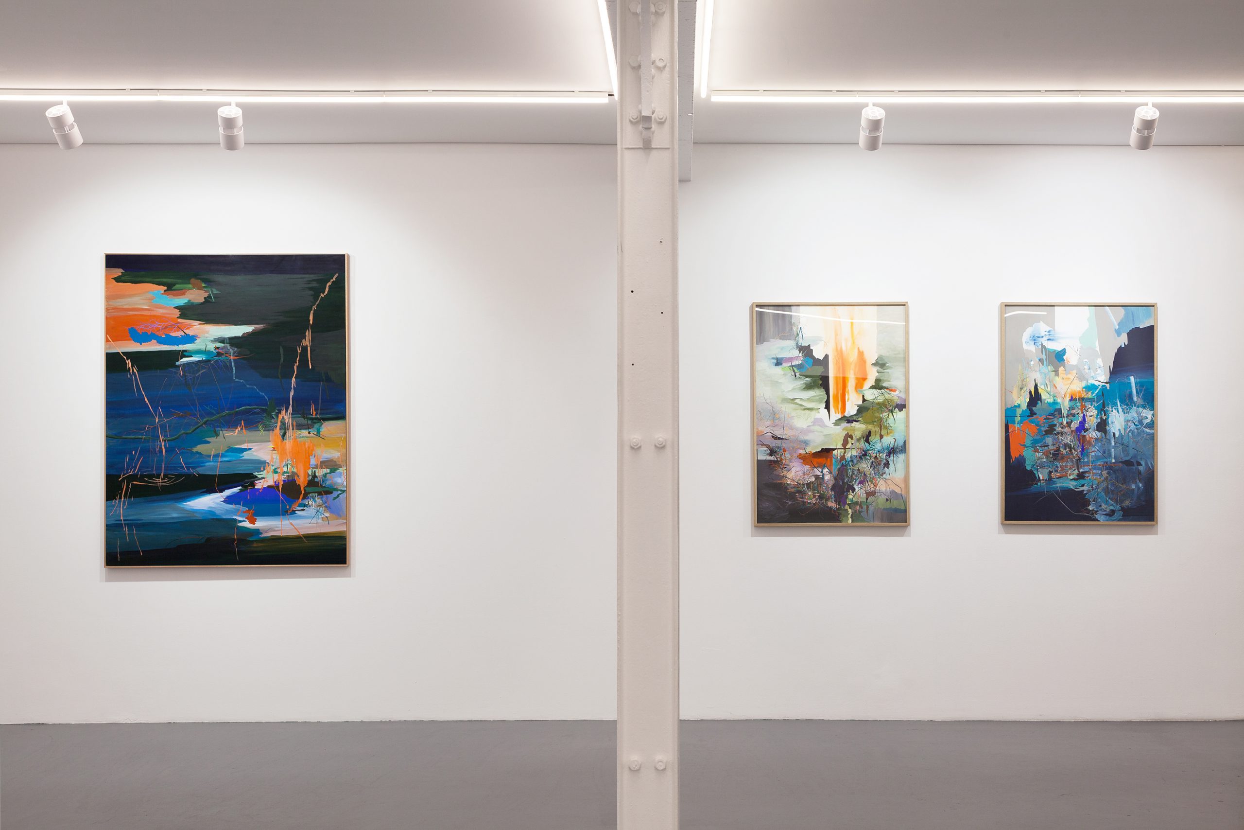 “This series of work can be seen as the completion of a ten-year cycle of aesthetic and formal explorations and experiments, and their potential narrative signifiers. This creative period began in late 2008, continued throughout the artist’s ten-year-long stay in Paris and Berlin, and bore its first fruits in the exhibition Deriva at the Galerie Jeune Création in Paris, in June 2009. In this project, the artist has abandoned the use of photographic images as models, which previously defined the visuality of her work whilst simultaneously linking it in some way to reality. Instead, she approaches experimentation in an uncertain space of representation, oriented towards abstraction, that is, towards ambiguity and the enigmatic, in the simplest sense of the term.