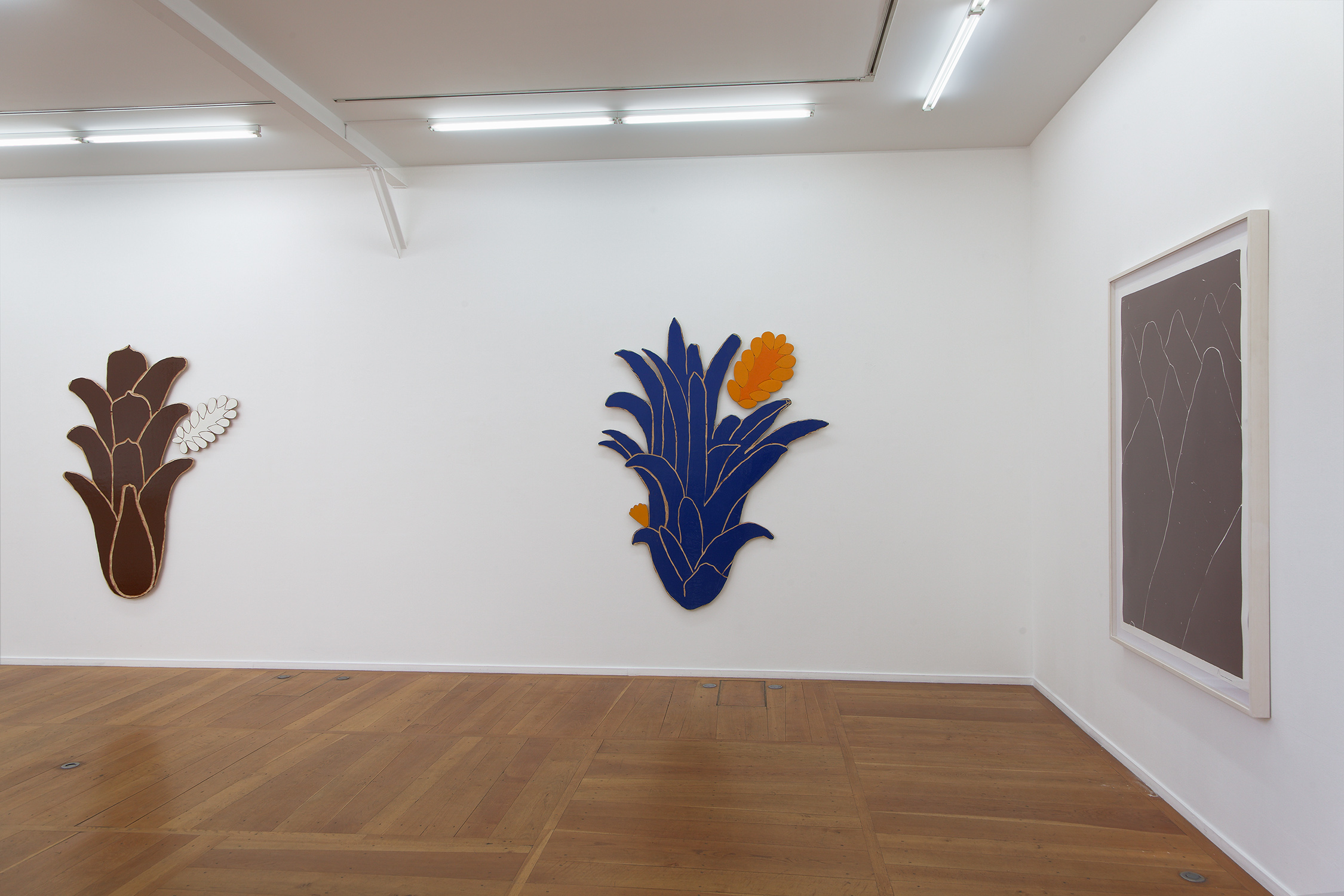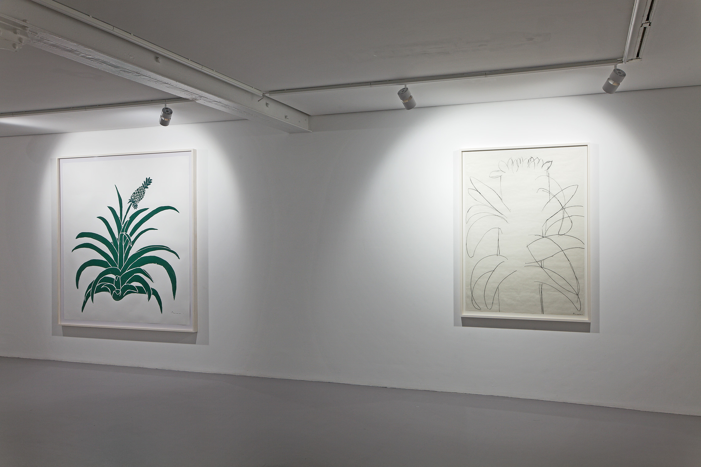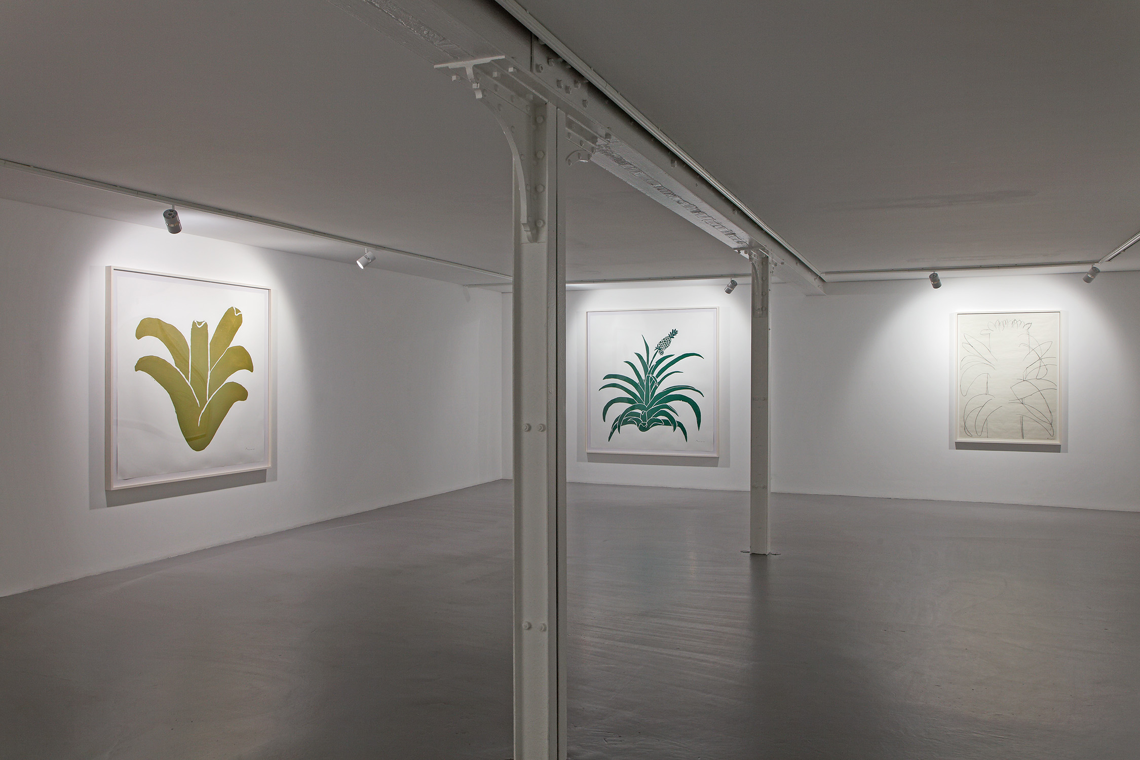 In this exhibition, the viewer can find representations of bromeliads (bromeliaceae), tropical plants native to the South American continent, characterized by stemless leaves, narrow rosettes and a deep calyx. Until the age of 8, the artist lived in the state of Piauí in Brazil, where a particular biome called caatinga is found, defined by a semi-arid tropical climate. This ecosystem is extremely rich in fauna and flora, with a prevalence of cacti and bromeliads. In Santídio Pereira’s work, nature and landscape are depicted both as fragile emblems in constant danger and as memories of his childhood. A childhood spent in permanent contact with nature constitutes a subtle space of nostalgia, similar to the homeland and identity that define one as an individual.