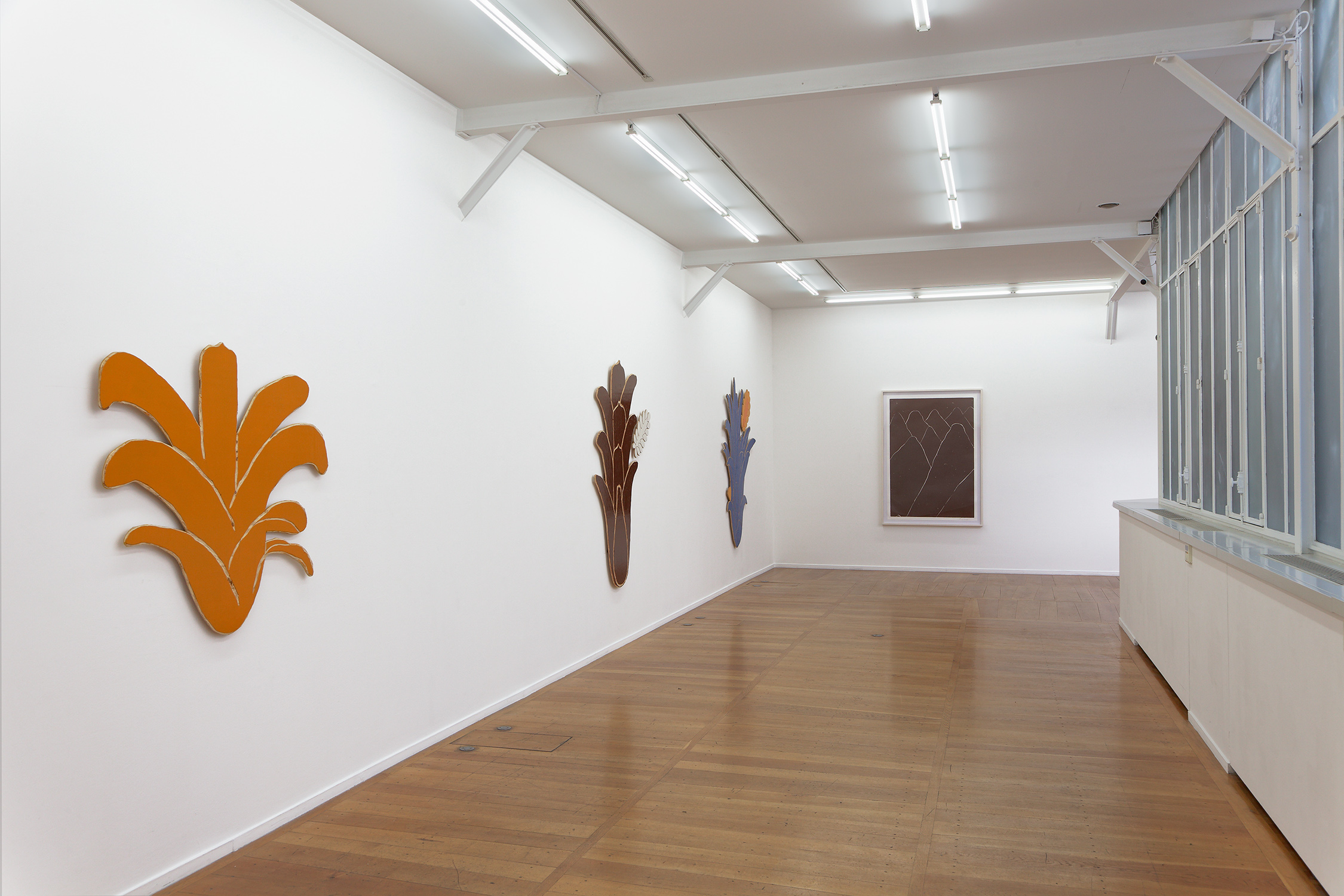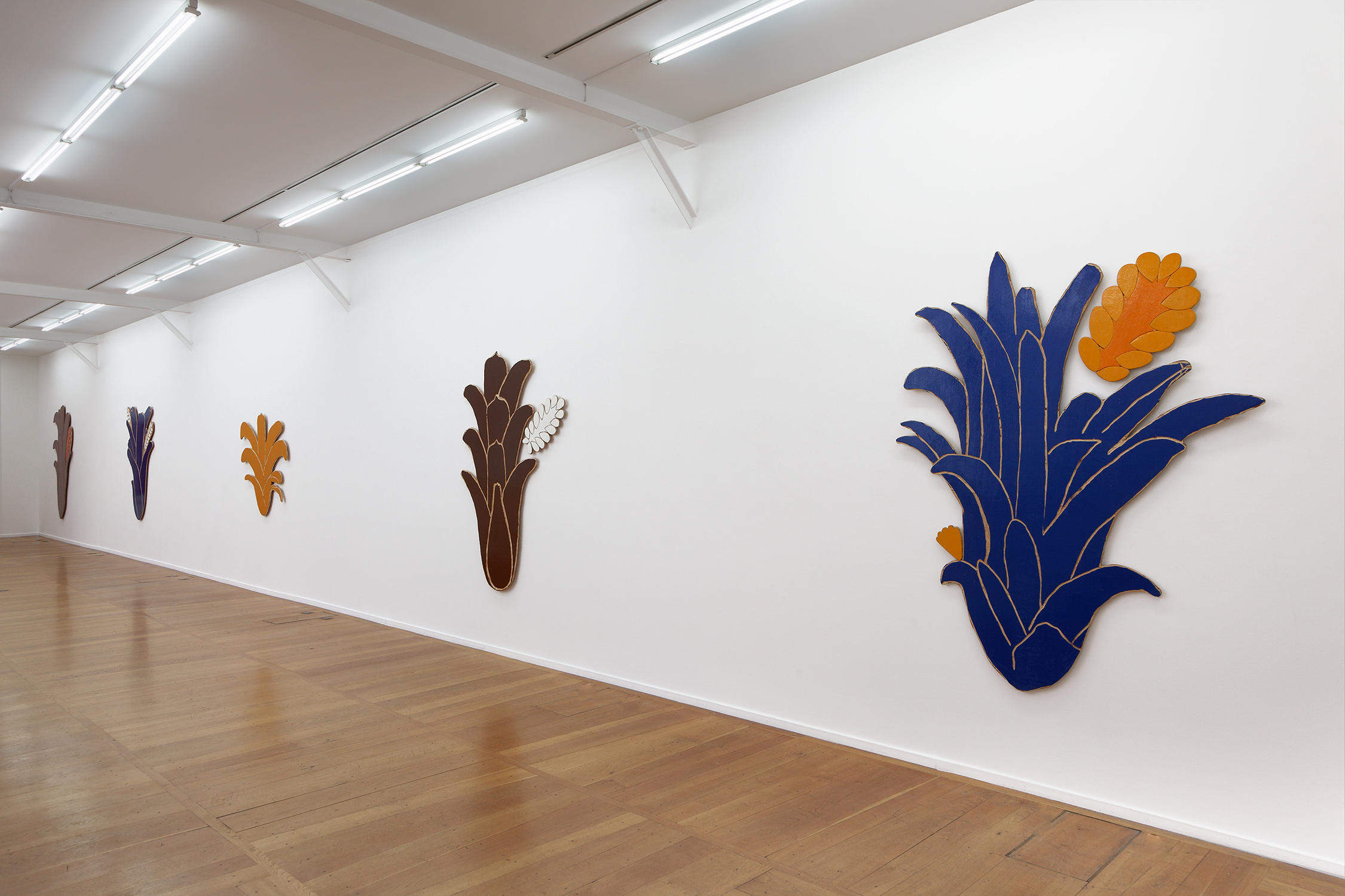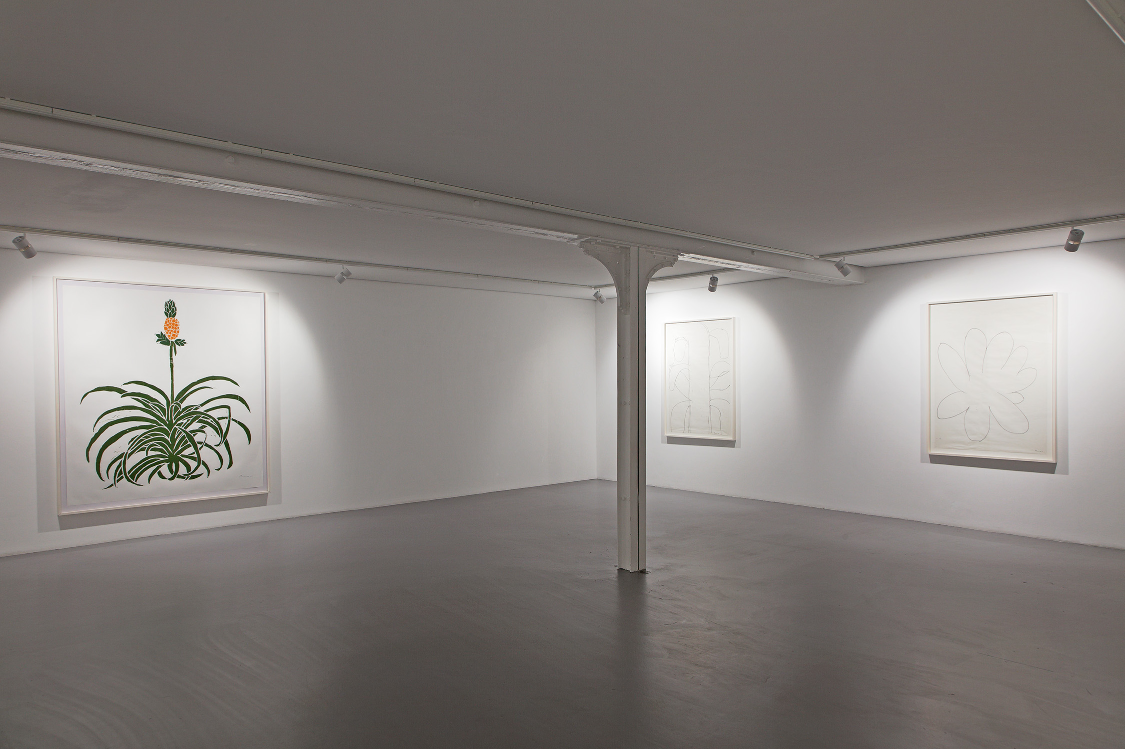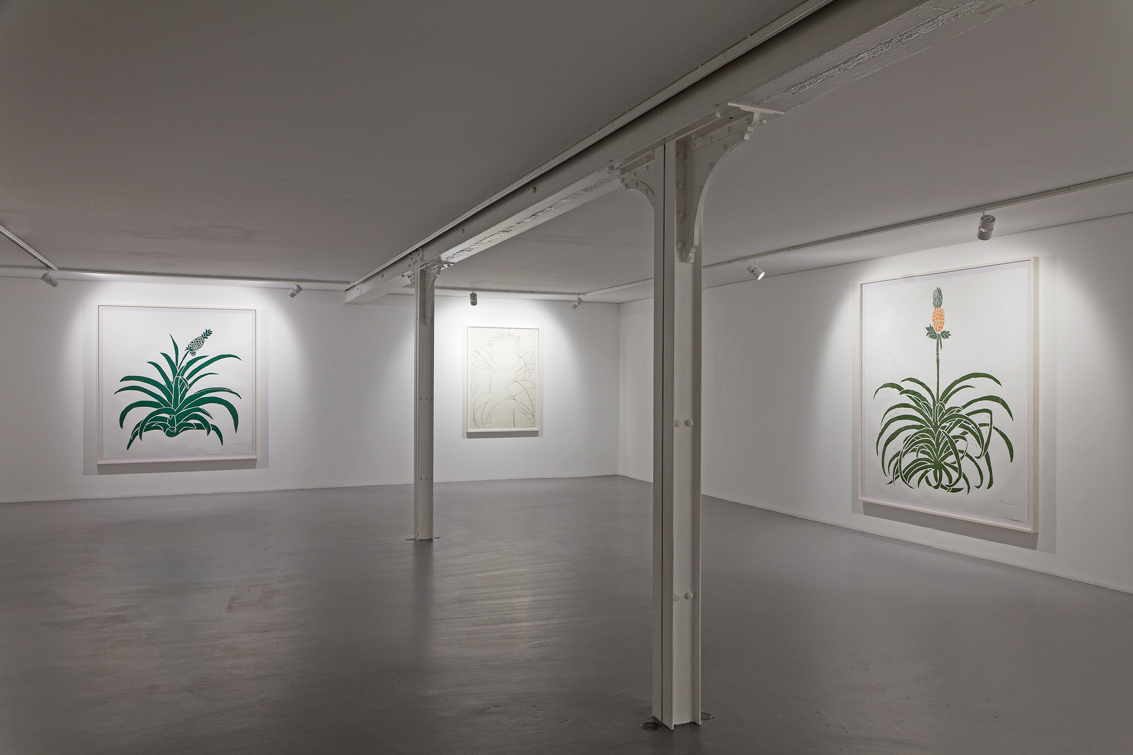 In this exhibition, the viewer can find representations of bromeliads (bromeliaceae), tropical plants native to the South American continent, characterized by stemless leaves, narrow rosettes and a deep calyx. Until the age of 8, the artist lived in the state of Piauí in Brazil, where a particular biome called caatinga is found, defined by a semi-arid tropical climate. This ecosystem is extremely rich in fauna and flora, with a prevalence of cacti and bromeliads. In Santídio Pereira’s work, nature and landscape are depicted both as fragile emblems in constant danger and as memories of his childhood. A childhood spent in permanent contact with nature constitutes a subtle space of nostalgia, similar to the homeland and identity that define one as an individual.