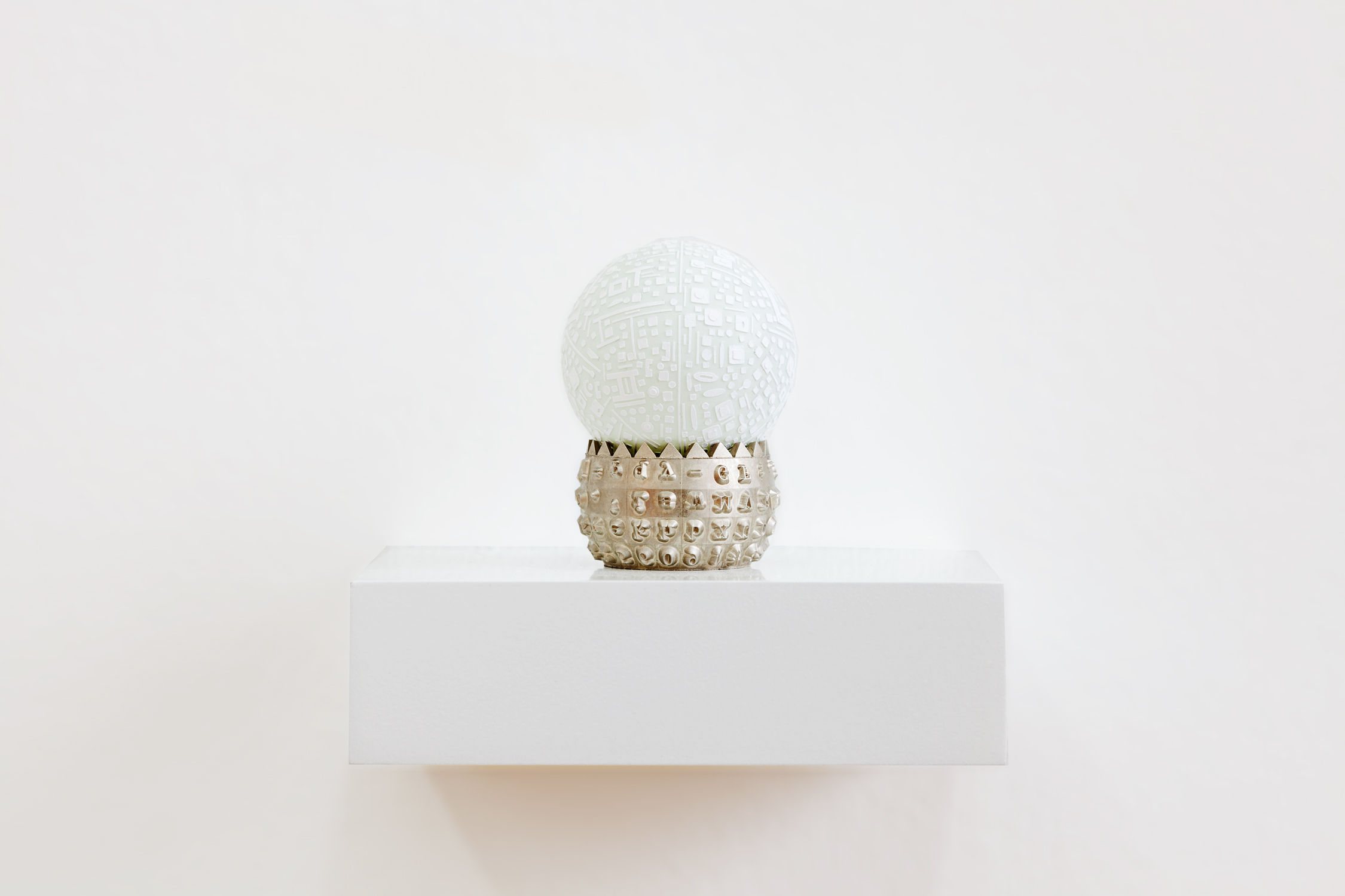 IBM selectric ball on shelf, self adhesive alphabet on ping pong ball