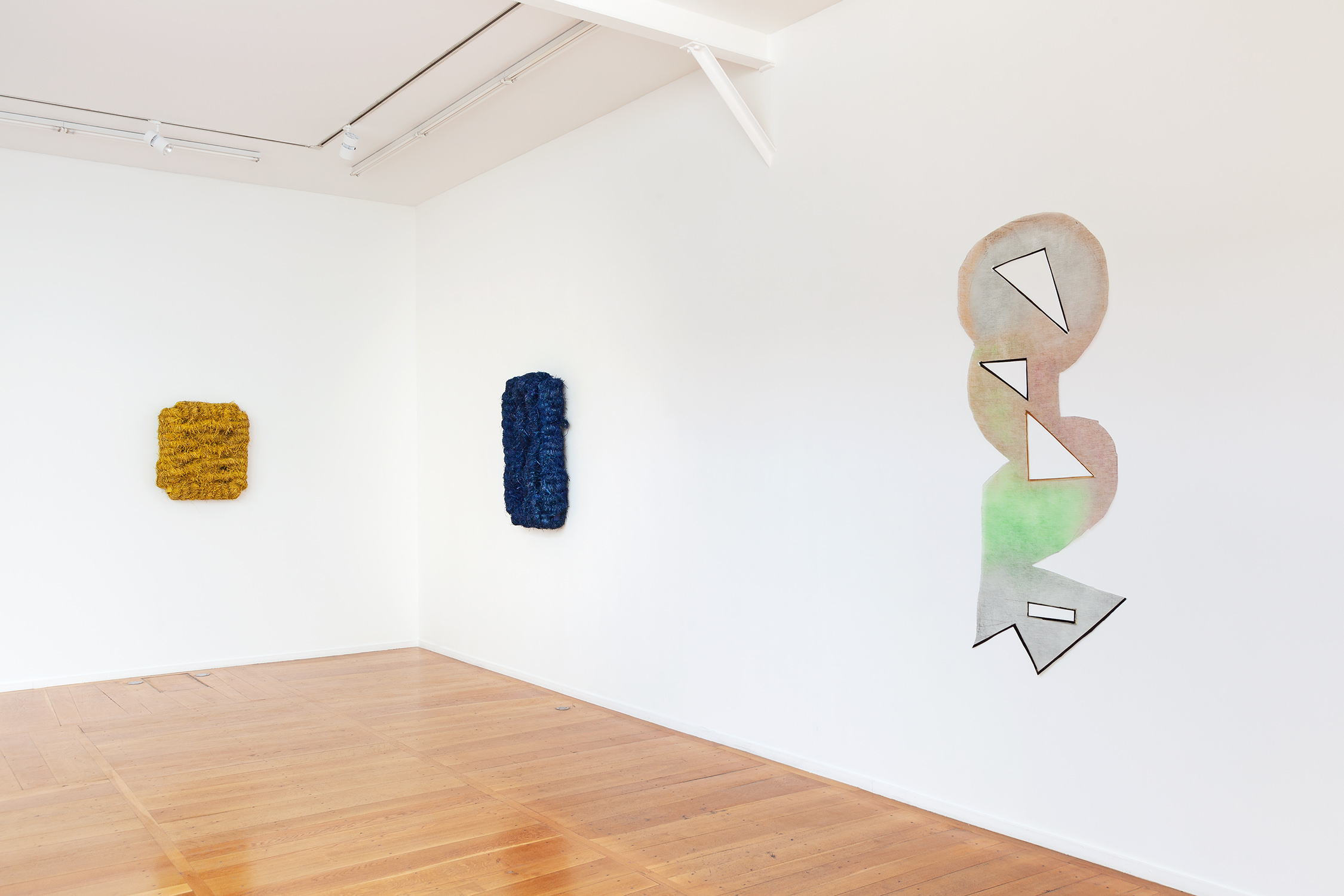 For this group exhibition which brings together ten artists, it was tempting to borrow the term “constituents” from Dezeuze. For everything here constitutes the actual work, beyond the mediums used on the surface (mainly paint). The supports themselves carry the values intrinsic to the work: concrete, wood, metal, stitching threads, sheets, etc. For most, these are materials found, diverted or handmade. The desire to give them a voice, once driven by Supports/Surfaces, has generated a trans-generational and trans-Atlantic cross-pollination among artists over the decades. Social networks have played a considerable role in this development. Artists who cherish this line of abstraction used to belong to a niche, known to collectors, curators and institutions. Luckily, thanks to the Internet (Instagram in particular), they “followed” each other, exchanged works and points of view and by doing so have spread their reputation internationally.