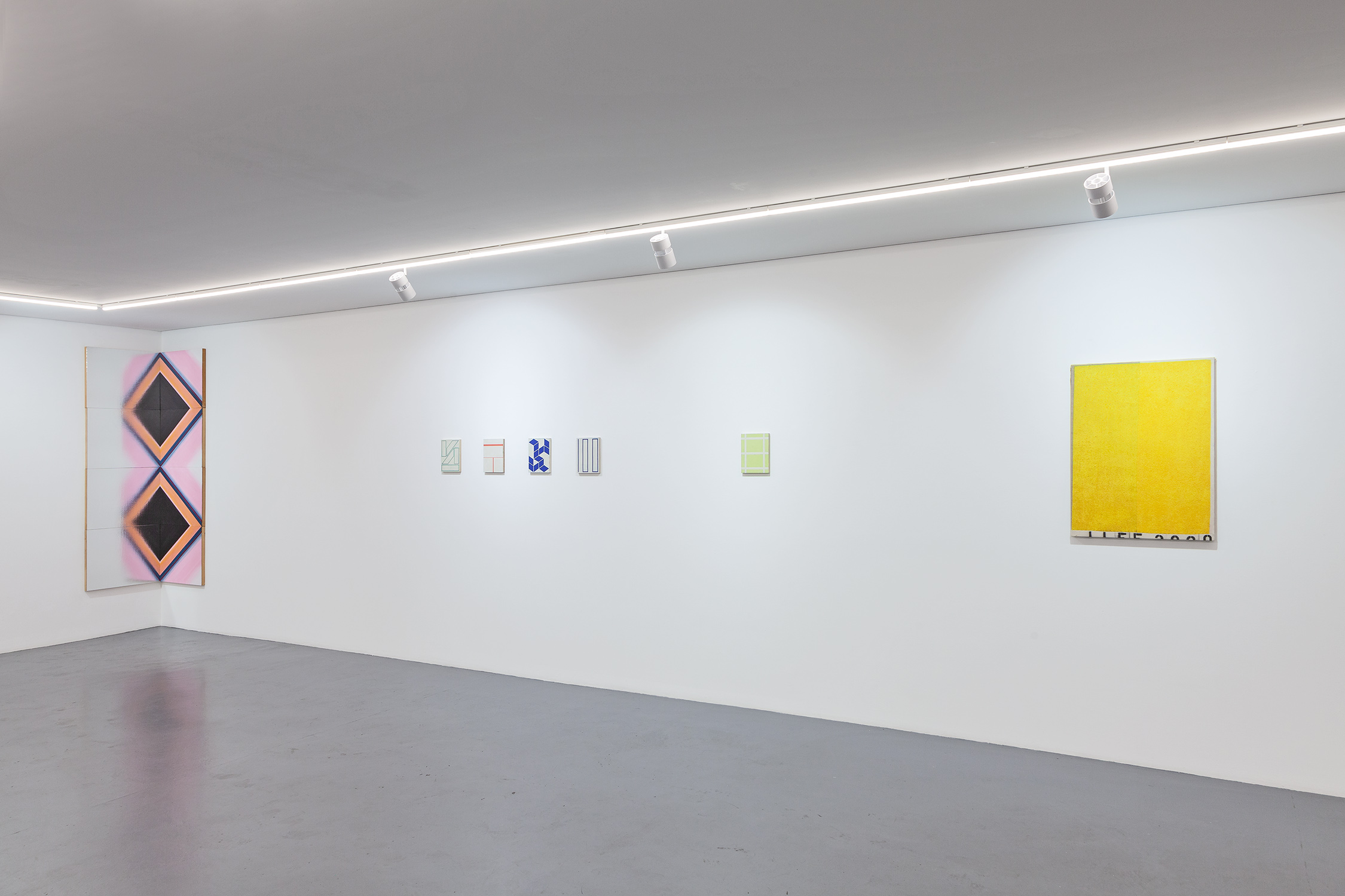Putting aside abstraction, with a geometrical tendency, if we had to identify some common denominators among the works presented here, it would undoubtedly be the economy of means used by the artists and their intention to integrate notions of materiality – including the supports – into a visual and semantic language. And if we backpedal the history of this aesthetic, we should also probably make a stop at the end of the 1960s, a period which gave birth to a group as brief as it was radical, known under the name of Supports/Surfaces. Hence the inclusion of some “Gazes” by Daniel Dezeuze, one of its proponents, presented here to recall the influence of this group (with the exception of a political discourse).