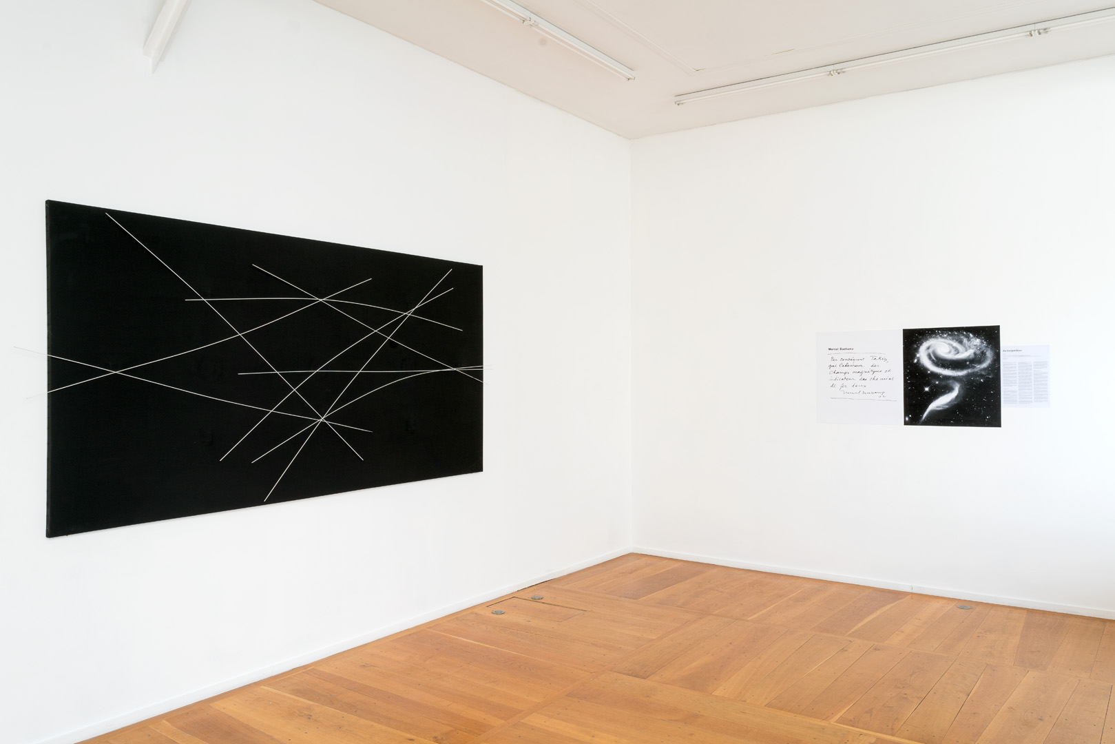 Presented here in black and white, these monochrome canvases, like Yin and Yang, evoke the complementary principle of magnets. The force of attraction between the magnets acts in the same way as attraction between men, or between celestial bodies. For Takis, it is a question not only of energy in the physical sense, but also of a breath that animates all living beings.