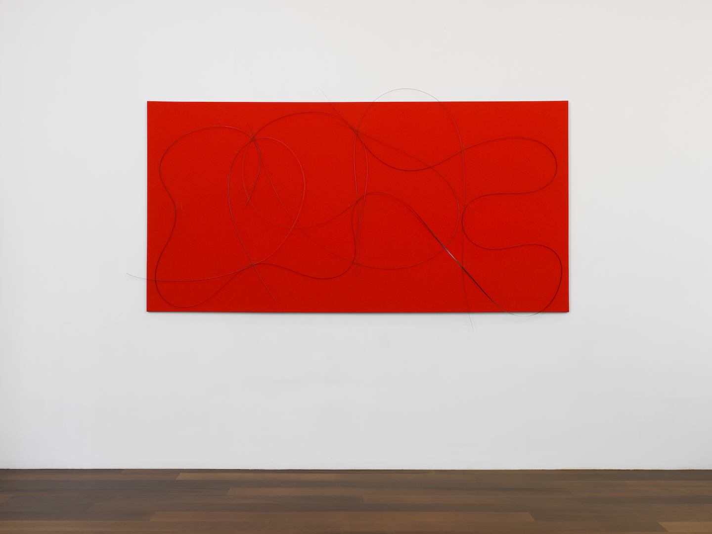 This exhibition also presents a set from Magnetic Walls. In the 60s, Takis, who was fascinated by magnetic fields, tried to incorporate this into his work. He created compositions that he titled Tableau Vibratif, Téléscupture and Magnetic walls. Thus, Magnetic walls, made with metallic forms that are subject to magnets attached to the back of the canvas, move feverishly and mysteriously on the surface of the paint. The metallic elements are connected to the canvas only by the magnets and therefore can be moved freely by the viewer. The work then changes status and becomes an interactive and evolving installation, questioning the role of the viewer and the randomness of each form.