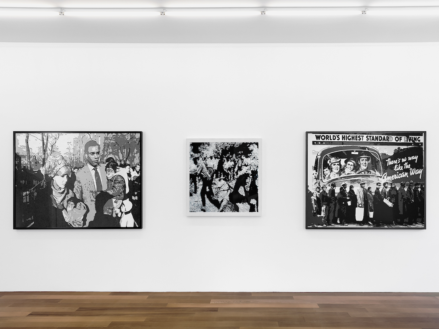 In reinforcing our feeling of familiarity, Vik Muniz deceives us. He wants us to be doubtful, critical and analytical. Although his pictures appear familiar, they indeed unsettle the process of identification. Pictures of America invites us to enter in the history of the United-States while simultaneously forcing us to question the various representations of the country presented in this selection.