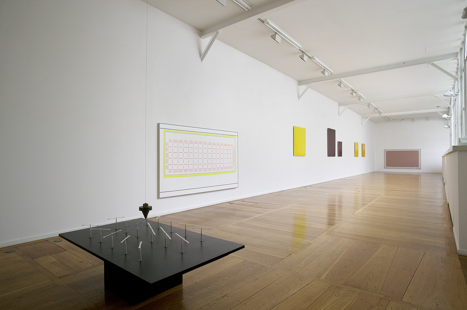 The exhibition Weight Watchers, presented by the Xippas Gallery in Paris from December 6th 2008 to January 31st 2009, will feature new works by Joseph Marioni, Dan Walsh, Ian Davenport and Peter Halley, each of whom engages (in their own manner) in the preoccupation with the gravity of color and of surface. The large work by Takis, the leitmotif of whose œuvre is a passion for magnetic forces, is at the center of this proposal for an exhibition, itself developed around an idea of abstraction that inscribes, in the depth of colors and of forms, a peaceful consciousness of our own physical materiality, of our presence.