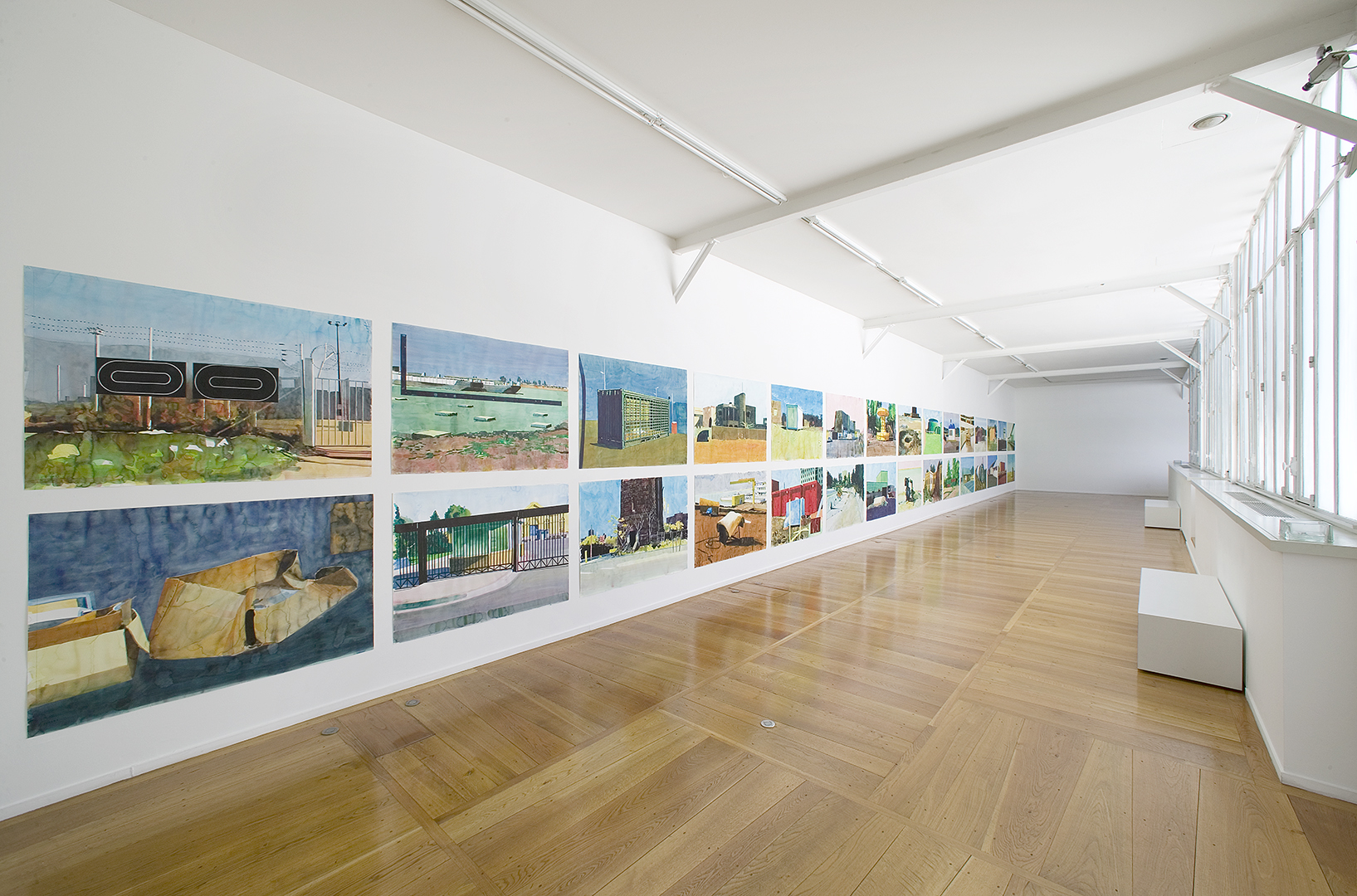Every watercolour is the subject of a text that the artist has chosen in consideration of the works. These are projected onto the wall of the gallery’s entrance.