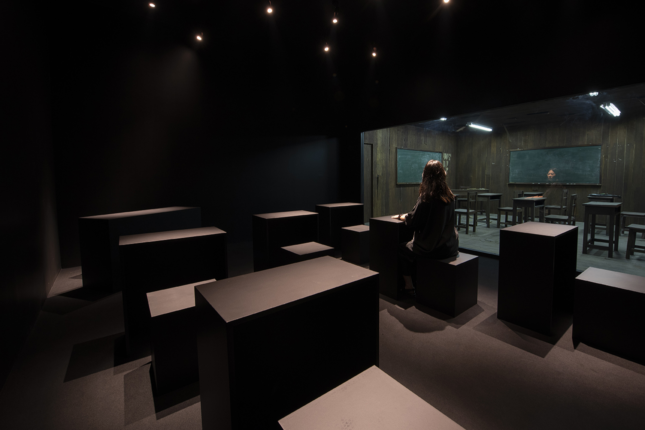 The immersive exhibition, curated by Dan Cameron, features iconic artworks by Argentine artist Leandro Erlich. The exhibit is conceived as a sequence of spaces that one might encounter every day: an elevator, subway, classroom, hair salon, sidewalk, swimming pool, laundry room—even a window through which the neighbors’ windows can be seen. Each space is a precise simulation of these ordinary scenarios, but Erlich’s touch fosters extraordinary experiences. A window is air, a reflection is missing, bodies travel in time and space.