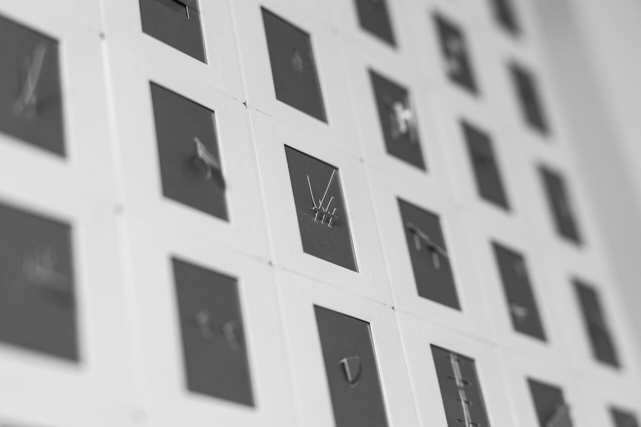 Through his use of simple materials manufactured for everyone’s use (such as sheets of paper, aluminum, apples, or even envelopes), the artist unfurls a topographic map of details linked to everyday life, privileging the micro over the macro, and urges us to come closer to his meticulous objects.