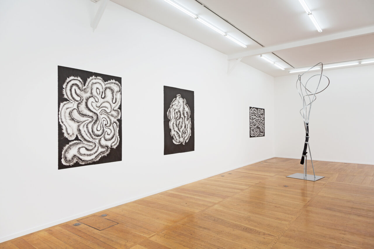 The second direction reappears through the Indian ink drawings that Pablo Reinoso began to create during the lockdown and that he calls Éclosions. The format may seem surprising, but this would be forgetting that his gesture as a sculptor is always preceded by that of a draftsman, and that his sculptures are like drawings in space, especially when they detach themselves from their “object-like” nature to move towards abstraction. Thus, this transition to an intimate, two-dimensional format seems logical, especially since the subject is inspired by the poetry of the microscopic, of vibrating cells. Life is locked in these fragile membranes, like a coiled potentiality, in a foetal state. It preserves itself there, waiting to be ready to assert itself in existence, generating “landscapes, movement, waves, life, time, breathing.” Sculpting life forms in matter.
